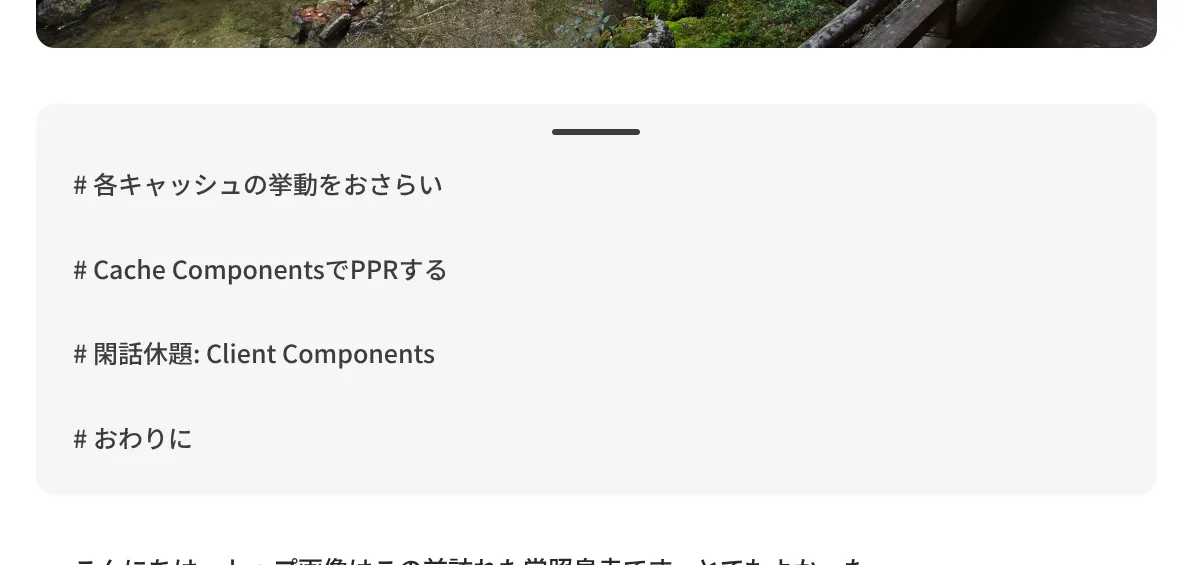最終的には、記事ページでも使用しているリンクカードのデザインを流用しつつ、左側に石庭の線と石のイメージを配置する、という形に落ち着きました。