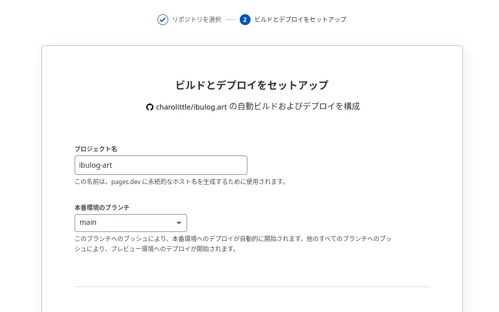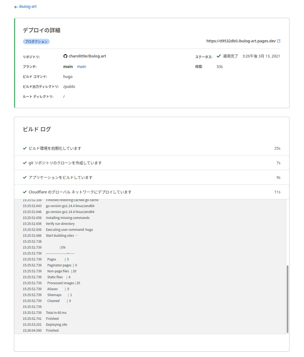 デプロイそのものは完了しましたが、HugoのbaseURLに「ibulog.art」を指定しているので、カスタムドメインを設定しないとページがうまく表示されません。