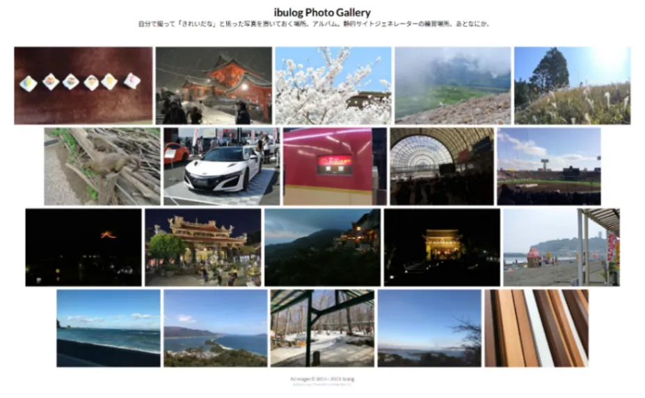 subtitle = "自分で撮って「きれいだな」と思った写真を置いておく場所。アルバム。静的サイトジェネレーターの練習場所。あとなにか。"