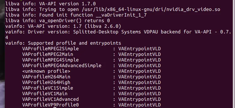 ここまで聞くとブラウザでもVP9を再生支援できそうなのですが、vdpau-va-driverがVP9に非対応。