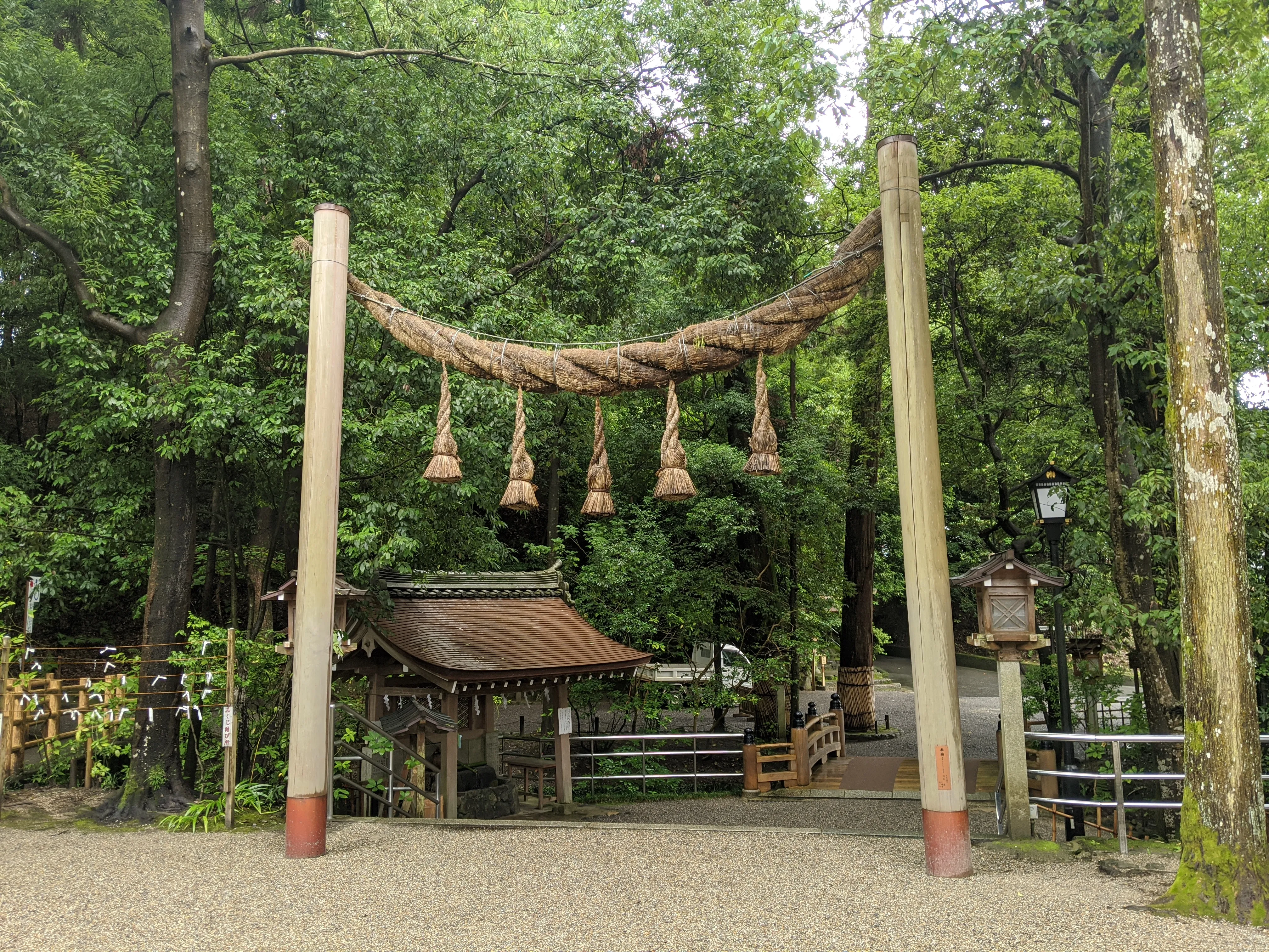 大神神社といえば、日本最古の神社として有名。2本の柱を縄で渡した古式の鳥居が見られる、山そのものを御神体とした素朴な神社です。
